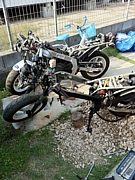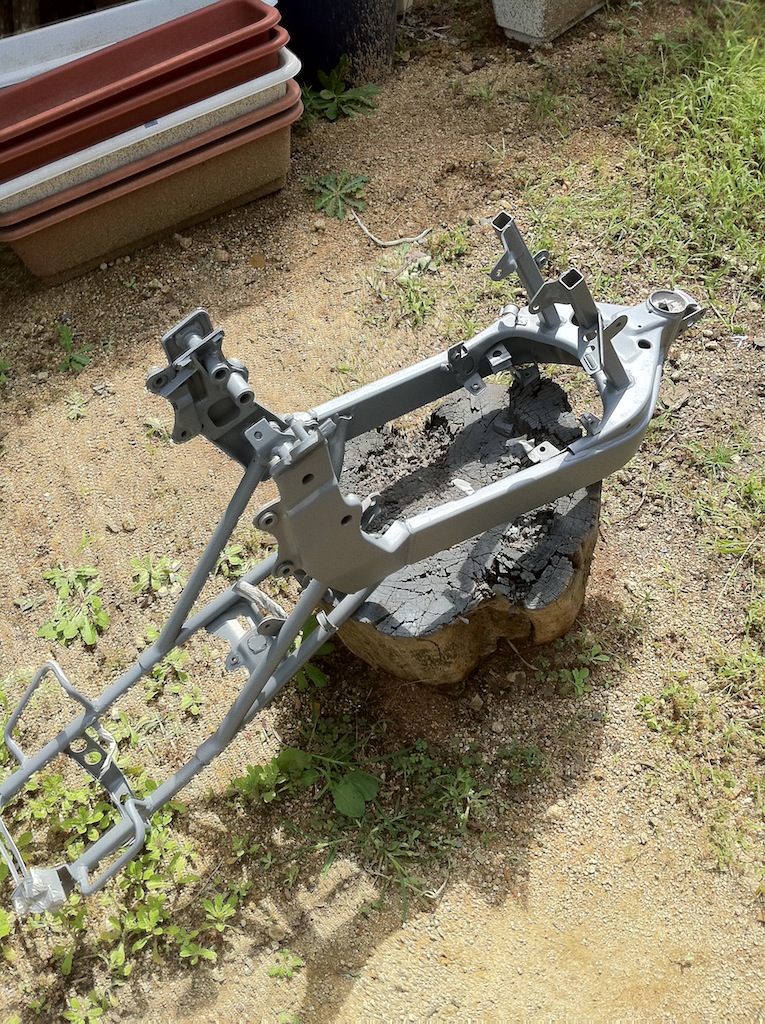 まずは「程度がいい筈」と言われたフルカウルの奴をバラしたのだが、エンジンハンガーのシャフトもスイングアーム
