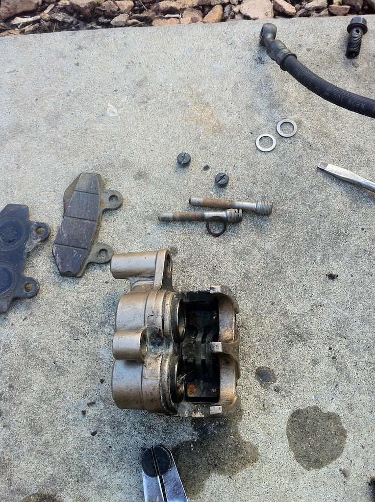 ブレーキパッドは残量はあるのだが、磨かれた様にカチカチのツルツルで、果たしてこれで効くのかという感じ。でも取り敢えずこれでいく事にする。