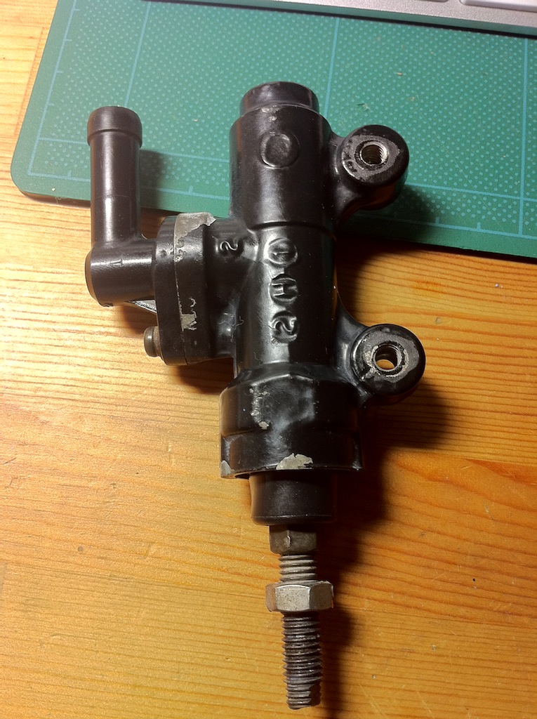 マスターシリンダーは、リザーバータンクの中にタールの様なものが溜まっていて、フルードが流れる穴を塞いでいる。