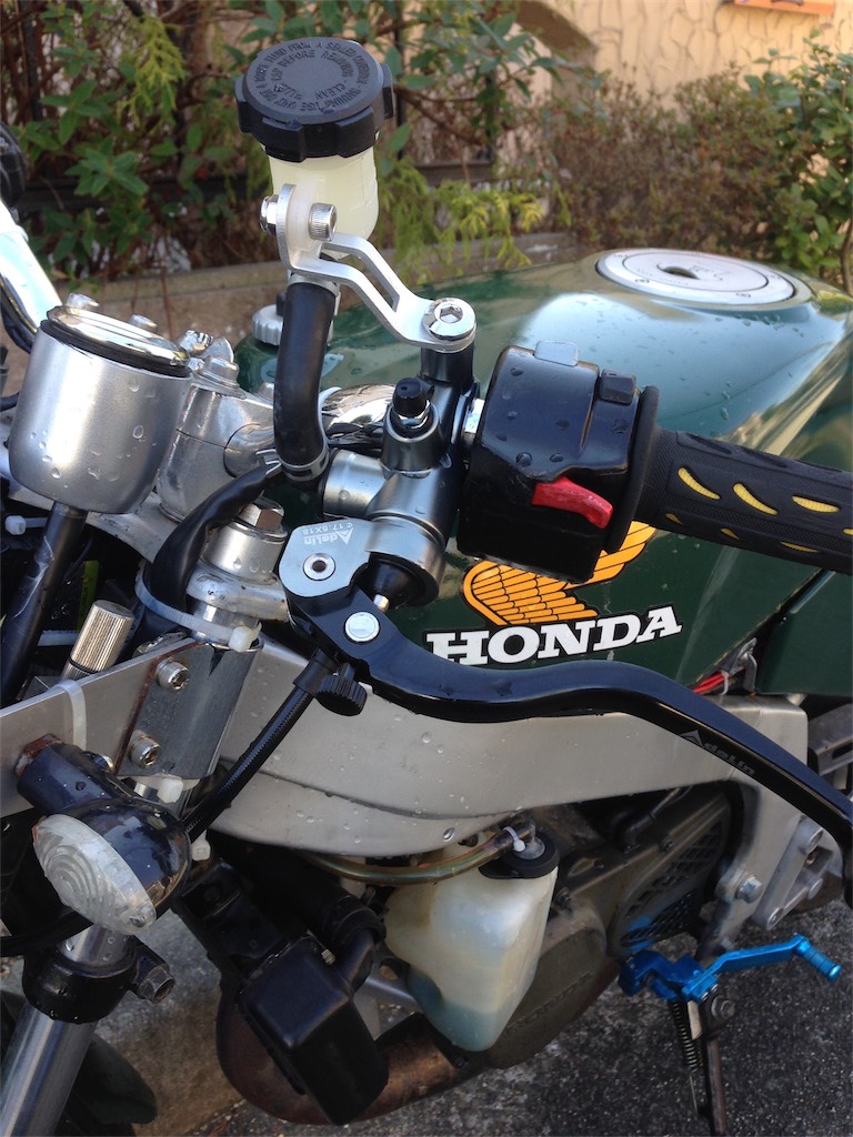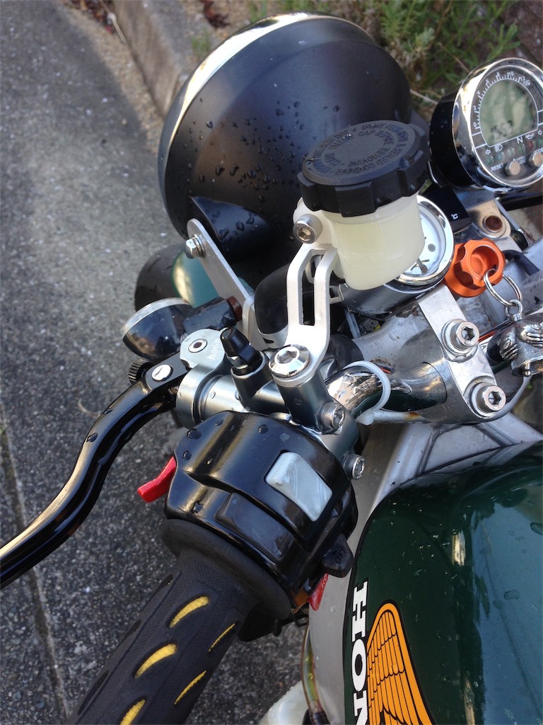 セミ油圧クラッチのマスターシリンターは GPZ900R のを使ってたんだけど、本体のサイズが大きくて、特に電流計をつけてからはリザーブタンクが邪魔に感じていた。