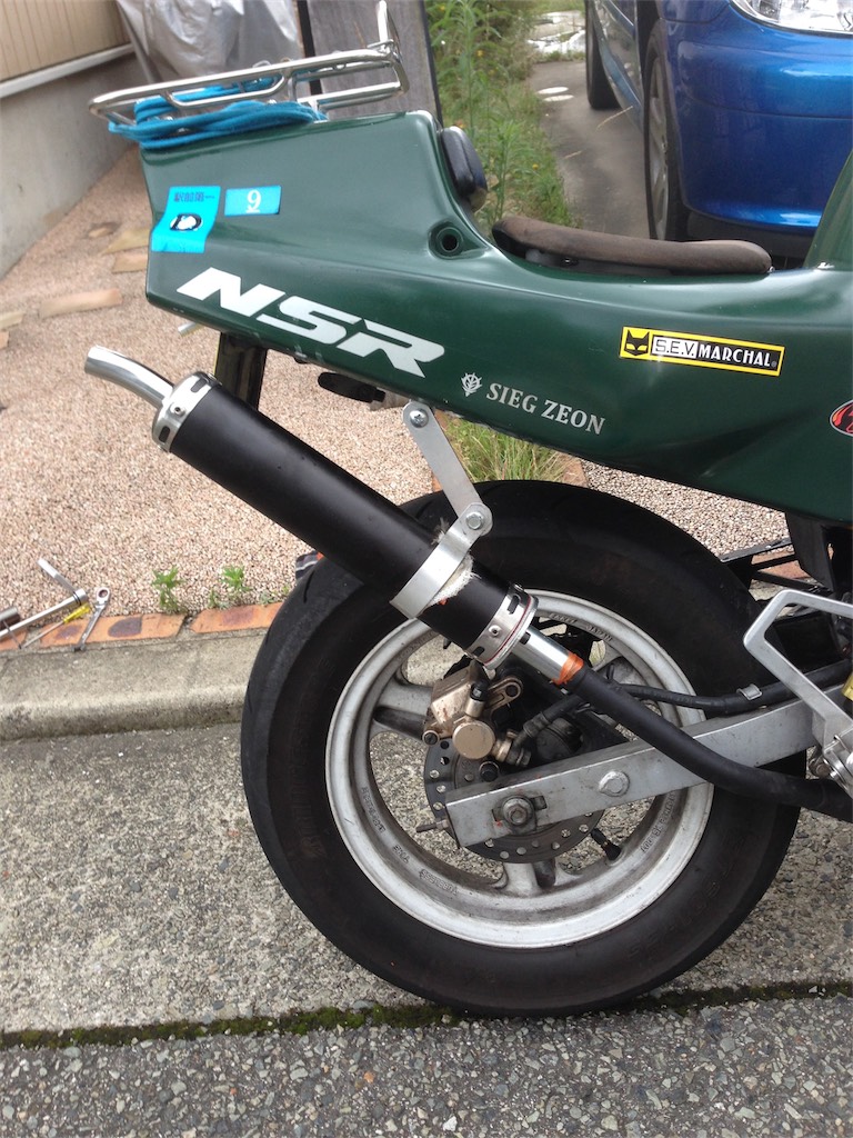 と言っても初めてバラすので、とりあえずは一時的に別のマフラーに付け替えて、ゆっくりと作業することにした。