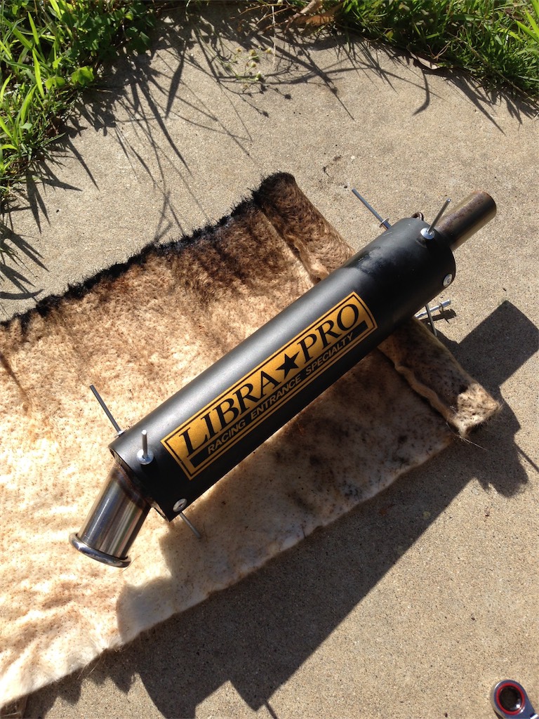 グラスウールを交換した事で音は静かになったけど、Amazon で買った安物マフラーの方が静かだったり (^^;