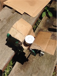 セラミックコーティング面をパイプ側にして、ぎゅっと巻いて付属のワイヤーで縛る。