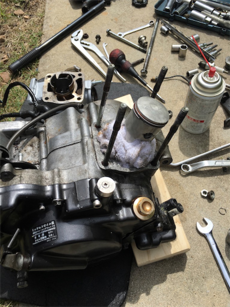 取りあえず動いてくれないと困るので、予備エンジンというか、貰ったままほったらかしだったエンジンを掃除してスワップして乗せた。