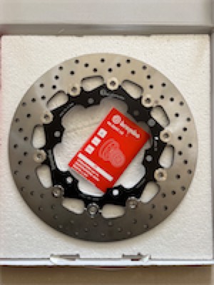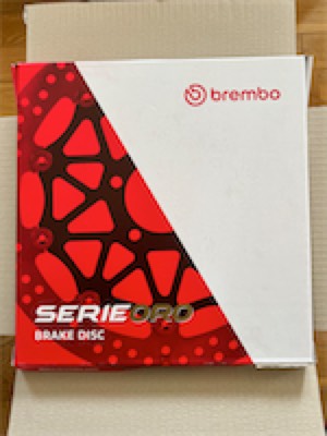 値段的にはペタル << サンスター < brembo だし、ペタルは雨の日でも効きが落ちにくいから良いんだよなぁとか思ったけど、ペタルはちょっとデザインがうるさいし、サンスターはインナーロータのデザインと色が重たいので、結局スッキリ見える brembo のドリルドローターにした。