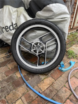 ホイールを取り付ける際も、タイダウンベルト大活躍(笑)