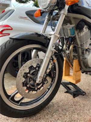 フロントのブレーキディスクの厚みが 4.15mm 。使用限界は 4mm。 前回の車検の時が 4.3mm だったので、次の車検まで持つだろうけど、そろそろ交換したいという誘惑にあらがいきれず、Web!keのセールを待って買っちゃった。
